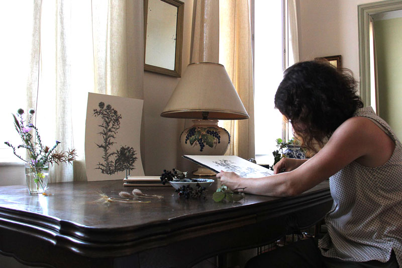 “When you realize you can do it all – when your kids can be without you a full week, when you manage to convince an art foundation to financially support your adventures, and when you have the best husband that pushes you to follow just that dream – the one of doing it all. Well, that’s when you wake up in a spacious room where the sunlight is peeking through big windows revealing the narrow streets of Sainte-Valière. This Artist Residency was just what I needed – fantastic home-cooked food, solitude, car trips, stimulating dinner conversations with the hostesses and the writer in residence (Jens-Martin Eriksen), and the occasional meeting with locals to see what they are up to (to learn from the experts about the fate of the cathars). And, not to forget, time to make art – in this case thorny beetles hidden in thorny plants coloured with the juice from berries and greenery collected during my daily walks outside the village.”